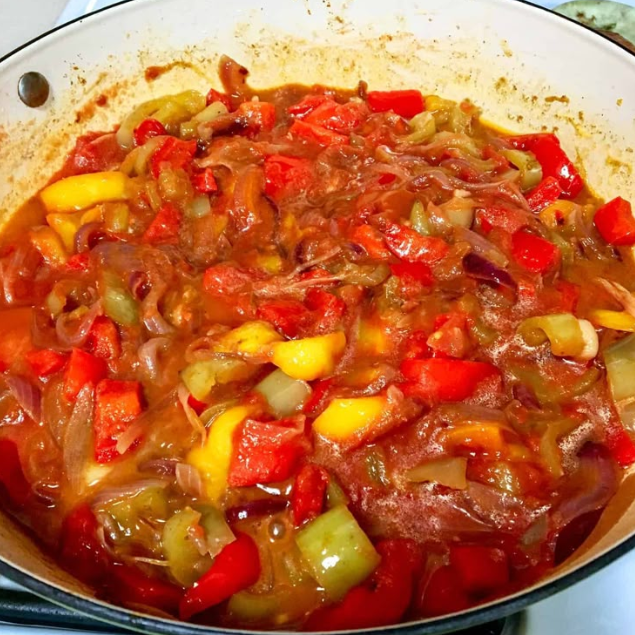 Here’s a traditional version of Lecsó (Hungarian Pepper-Tomato Stew):