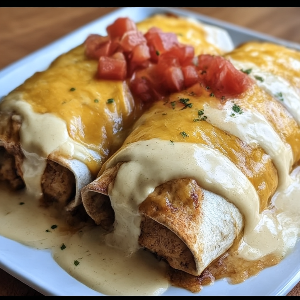 These Cheesy Chicken Enchiladas feature tender shredded chicken and melted cheese wrapped in flour tortillas,