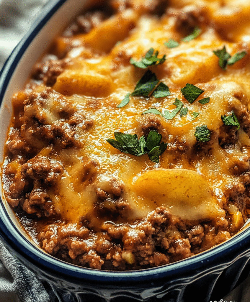 This Hobo Casserole brings together layers of seasoned ground beef, thinly sliced potatoes, and a