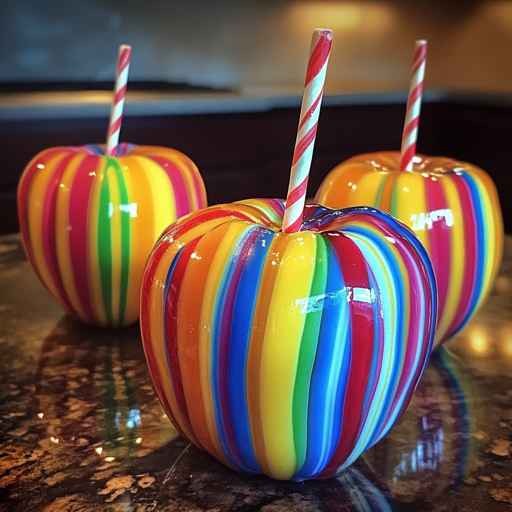 These Striped Candy Apples transform the classic carnival treat into an eye-catching masterpiece that’s perfect