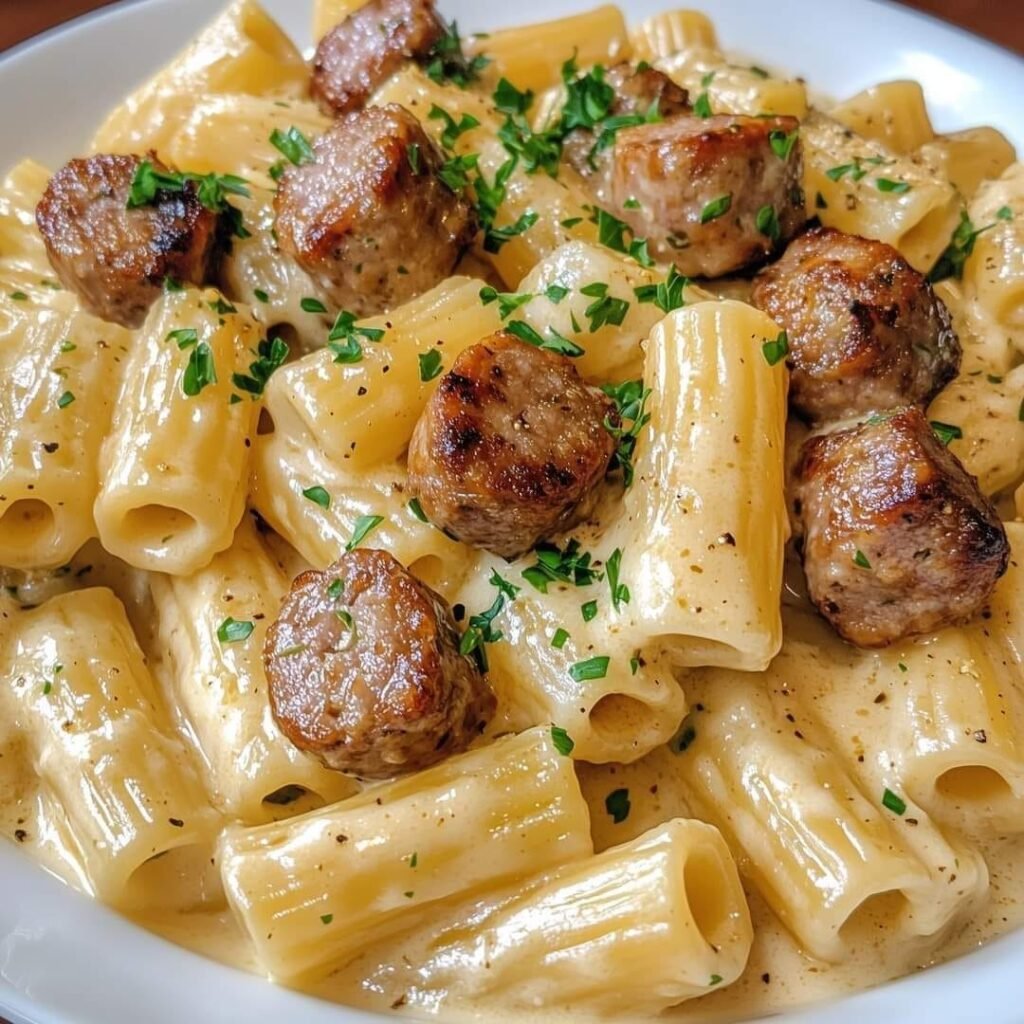 Here’s a delicious recipe for Garlic Sausage Alfredo Rigatoni — creamy, garlicky, and filled with savory sausage flavor! Perfect for a cozy dinner.