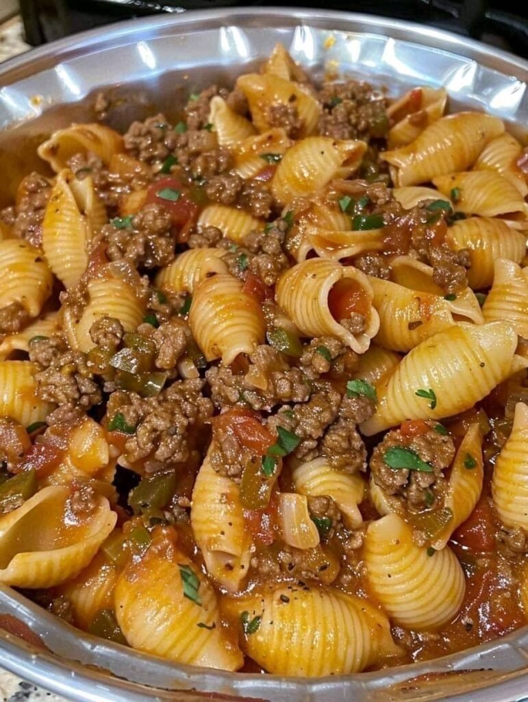 This hearty dish is perfect for an easy weeknight dinner! Enjoy your savory pasta with ground beef!