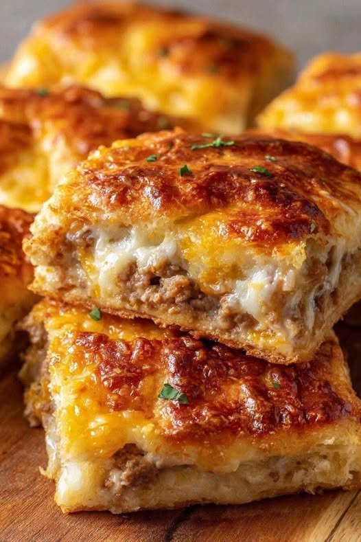 5. Spoon beef mixture into the center of each square. Top with cheese.