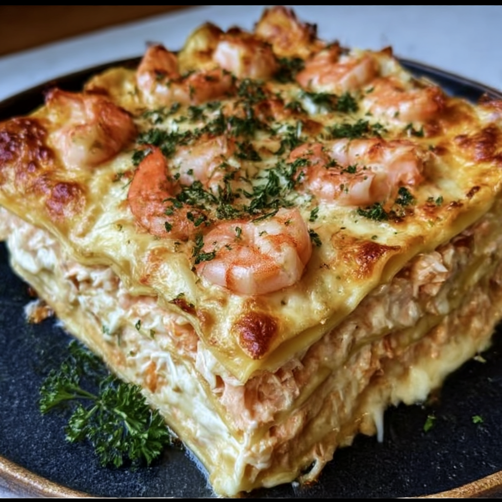 Elegant Seafood Showcase – Features premium ingredients that make ordinary lasagna feel special and restaurant-worthy.