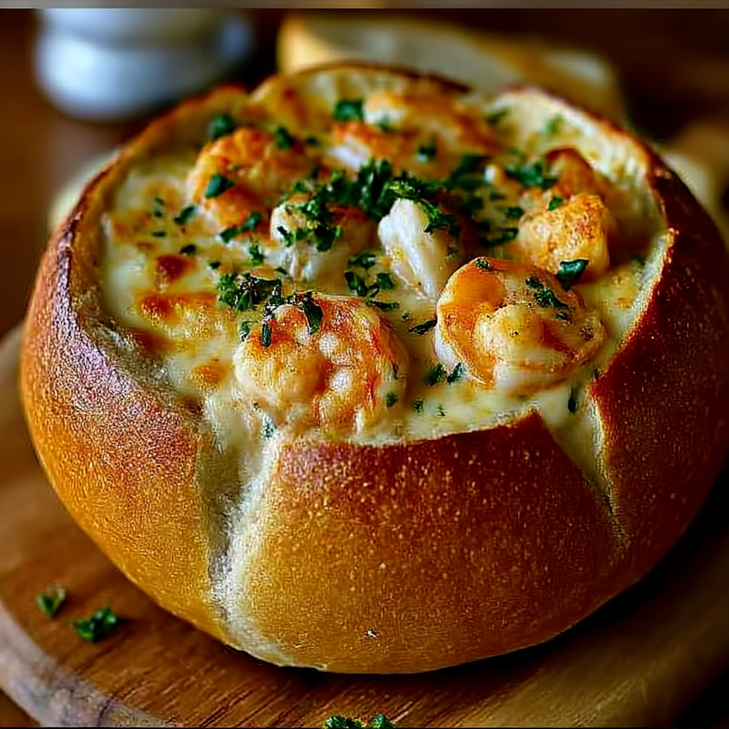 Inspired by the classic flavors of the coast and the comforting warmth of a baked bread bowl, this recipe combines succulent crab and shrimp with creamy cheese and seasonings, offering an irresistible flavor that’s perfect for any occasion. The beauty lies not just in the incredible taste, but in the interactive dining experience—there’s something uniquely satisfying about breaking off pieces of warm, crusty bread to scoop up that rich, bubbly seafood filling.