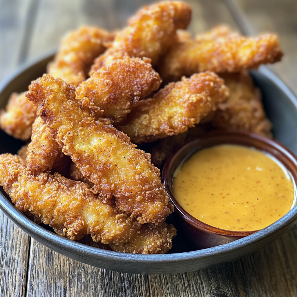 ¡Disfruta tus tiras de pollo crujientes con tu salsa favorita!