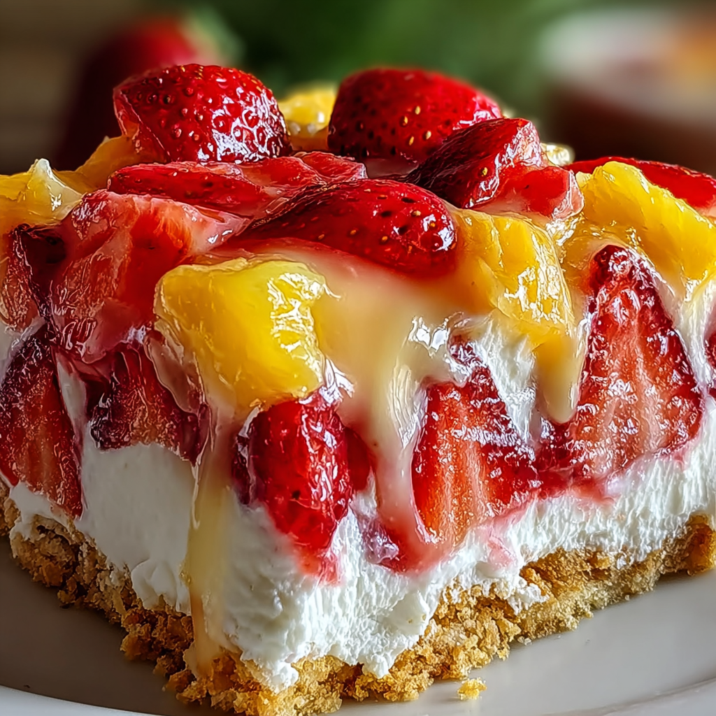 This no-bake strawberry split cake layers tropical flavors in a convenient format that requires no oven time, making it perfect for hot weather entertaining or when you need an impressive dessert without heating up the kitchen. The recipe builds flavor through distinct layers: a graham cracker crust, creamy cheesecake filling, fresh strawberries, pineapple pudding, and whipped cream topping. Each layer contributes different textures and complementary flavors that create a refreshing dessert reminiscent of classic banana splits.